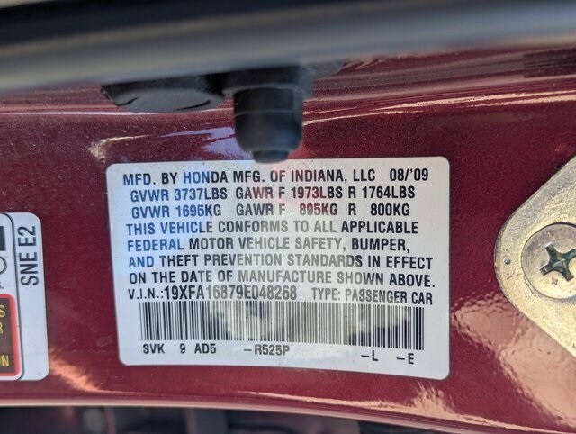 Red 2009 Honda Civic EX FWD Compact 5-Speed Automatic 1.8L I4 SOHC 16V i-VTEC Beige Cloth.
