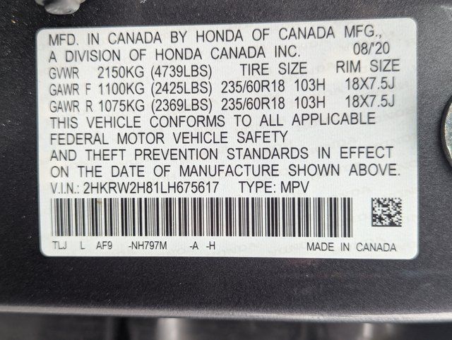 Gray 2020 Honda CR-V EX-L AWD CVT 1.5L I4 DOHC 16V AWD.