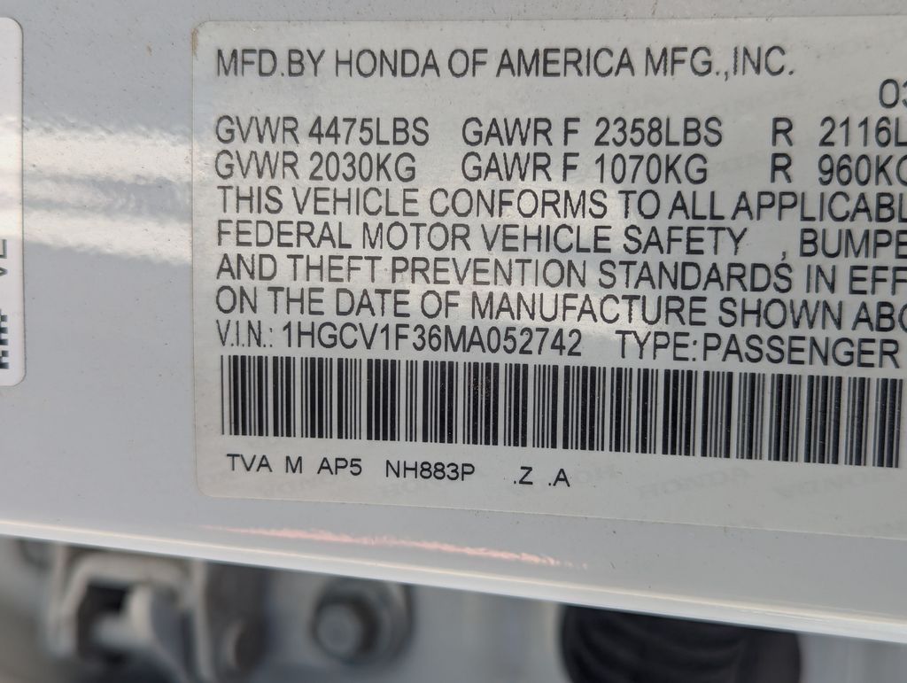 White 2021 Honda Accord Sport FWD CVT 1.5T I4 DOHC 16V Turbocharged VTEC Cloth.