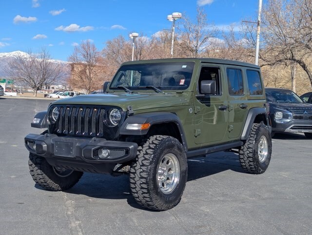 Sarge Green Clearcoat 2021 Jeep Wrangler Unlimited Willys 4WD 8-Speed Automatic 2.0L I4 DOHC 115V Auxiliary Power Outlet, 7.0" Touchscreen Display, 8.4" Radio & Premium Audio Group, Air Conditioning w/Auto Temperature Control, Air Filtering, Alpine Premium Audio System, Apple CarPlay, Auto-Dimming Rear-View Mirror, Cluster 7.0" TFT Color Display, Cold Weather Group, Console Bin Task Light, Convenience Group, Emergency/Assistance Call, For More Info, Call 800-643-2112, Front LED Fog Lamps, Google Android Auto, GPS Antenna Input, Heated Front Seats, Heated Steering Wheel, Integrated Center Stack Radio, LED Headlamp & Fog Lamp Group, LED Premium Reflector Headlamps, Media Hub-2 USBS (Both Charge Only), Power Top Quarter Window Storage Bag, Radio: Uconnect 4 w/7" Display, Rear Window Defroster, Rear Window Wiper/Washer, Remote USB Port - Charge Only, Removable Rear Quarter Windows, SiriusXM Radio Service, SiriusXM Satellite Radio, Sky 1-Touch Power Top, Sun and Sound Package, Technology Group, Universal Garage Door Opener, USB Host Flip.
